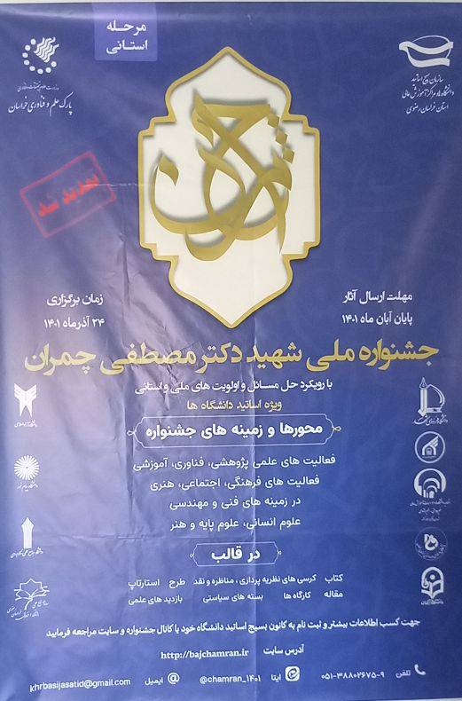 مرحله کشوری جشنواره علمی شهید چمران همزمان با هفته پژوهش و فناوری برگزار خواهد شد.