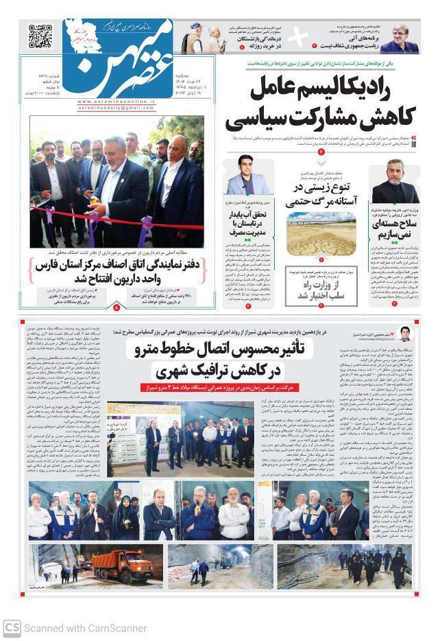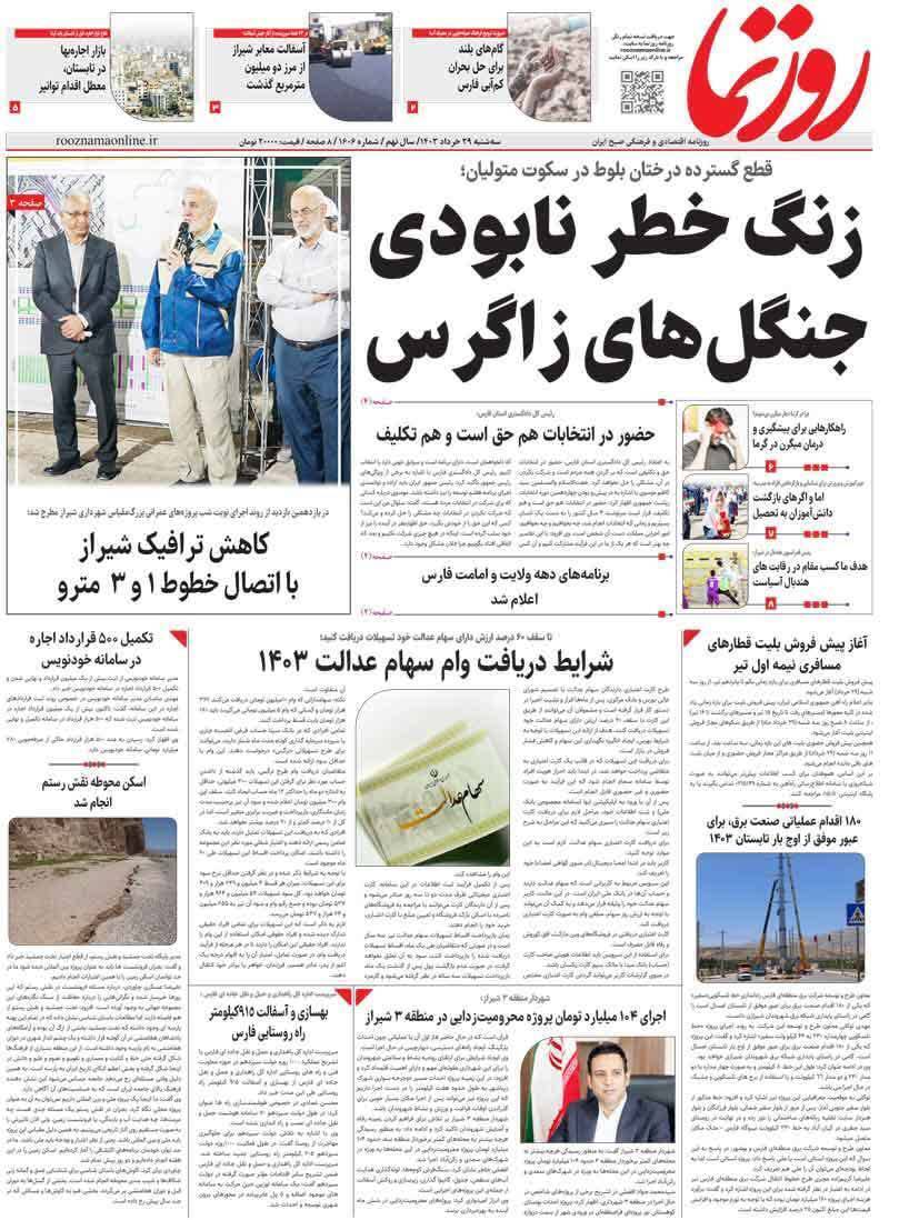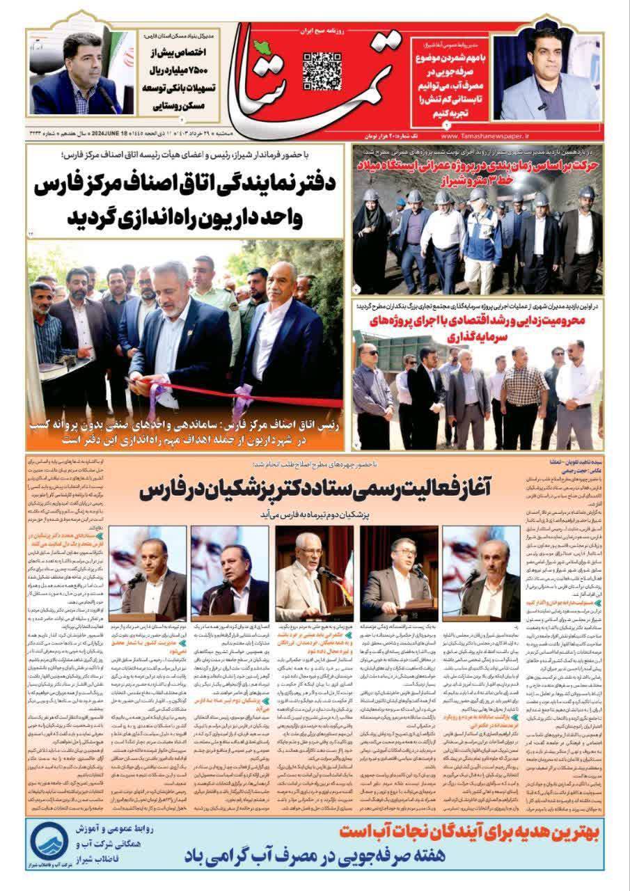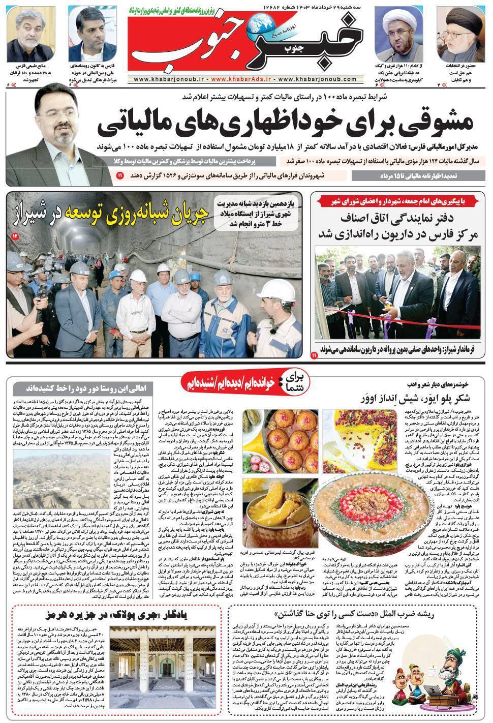 تابناک فارس به نقل از صدا و سیما: روزنامههای فارس سه شنبه ۲۹ خرداد ۱۴۰۳ به موضوعات مختلف استان و کشورمان پرداخته اند.