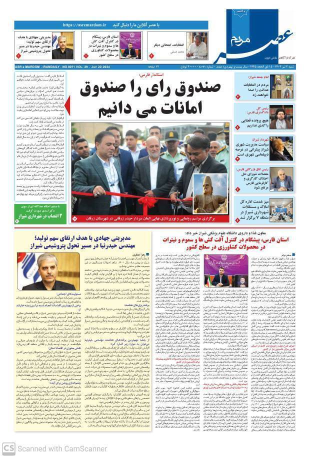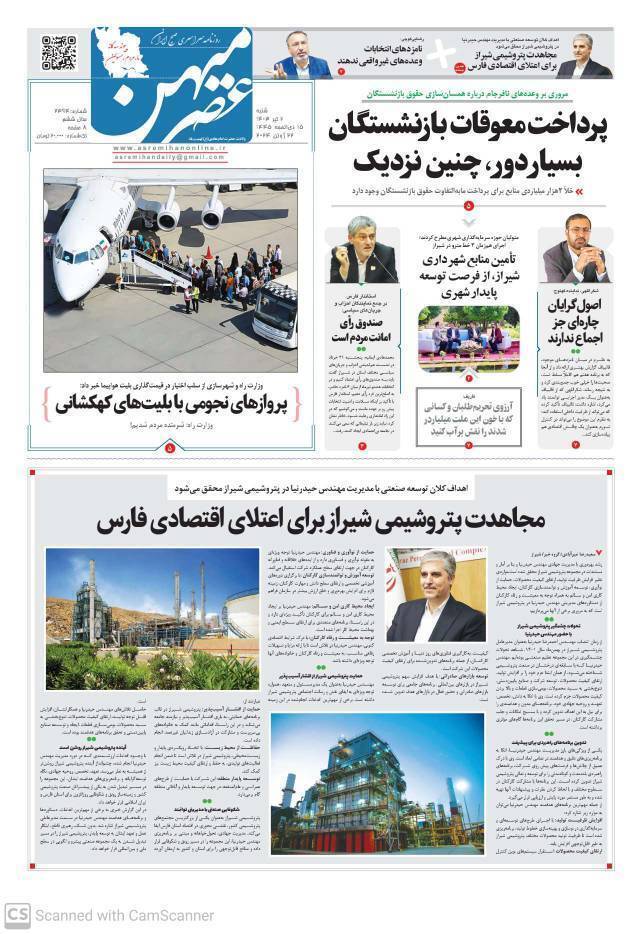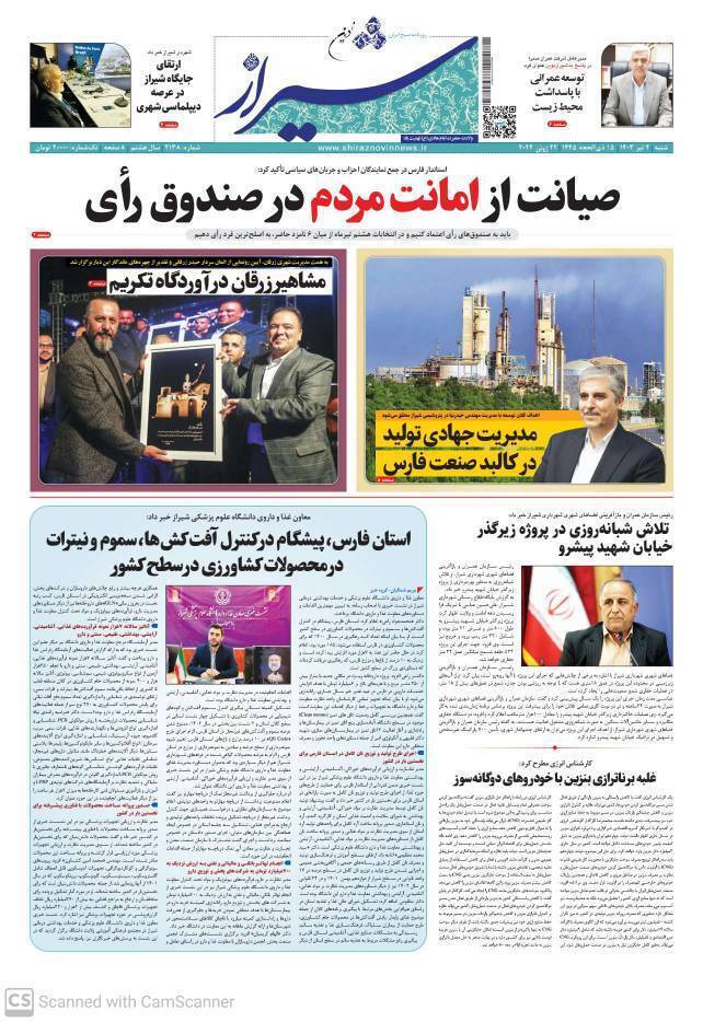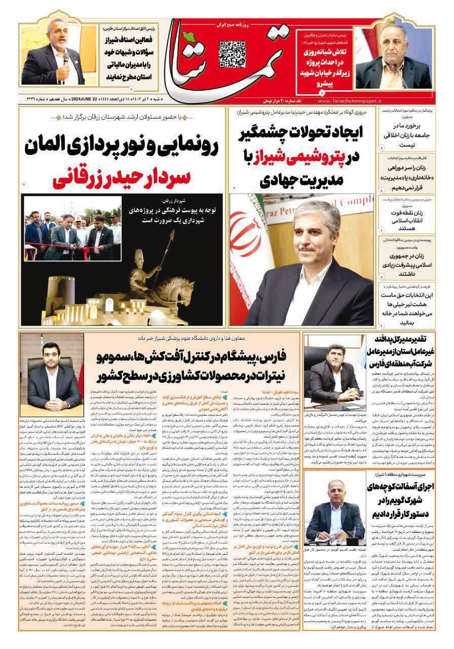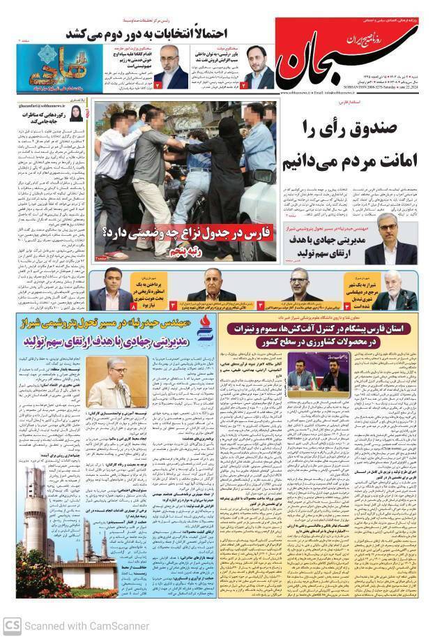 تابناک فارس به نقل از صدا و سیما: روزنامههای فارس شنبه ۲ تیر ۱۴۰۳ به موضوعات مختلف استان و کشورمان پرداخته اند.